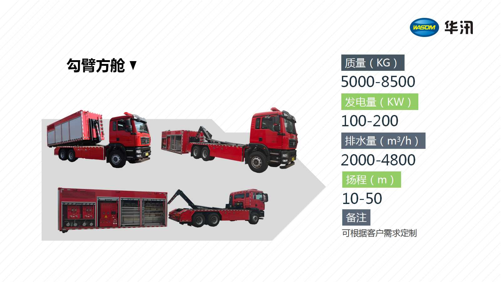 质量(KG):5000-8500 发电量(KW):100-200 排水量(m3/h):2000-4800 扬程(m):10-50 备注:可以定制各种特殊要求
